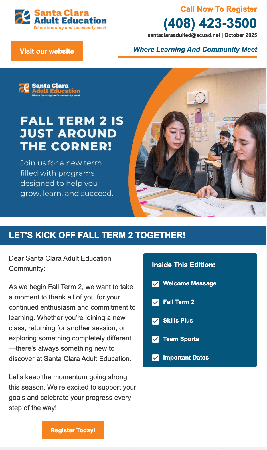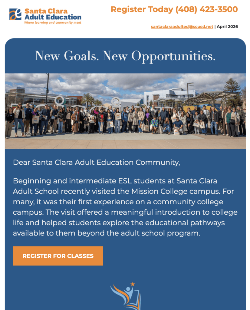 The mission of Santa Clara Adult Education (part of the Santa Clara Unified School District) is to empower adults of all ages and abilities to succeed in an ever-changing world.