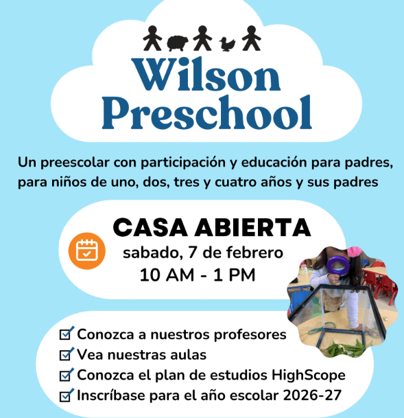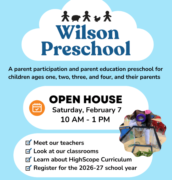 Wilson Preschool is a parent participation and parent education preschool where parents and children learn together. We use a developmentally-appropriate curriculum based on the HighScope model where children learn through hands-on experiences and active play. We respect and celebrate our families’ diversity and provide a safe and nurturing environment. Parents actively participate in their children’s classrooms once a week. Through their participation, parents learn ways to foster their children’s social, emotional, physical, intellectual, and creative development.